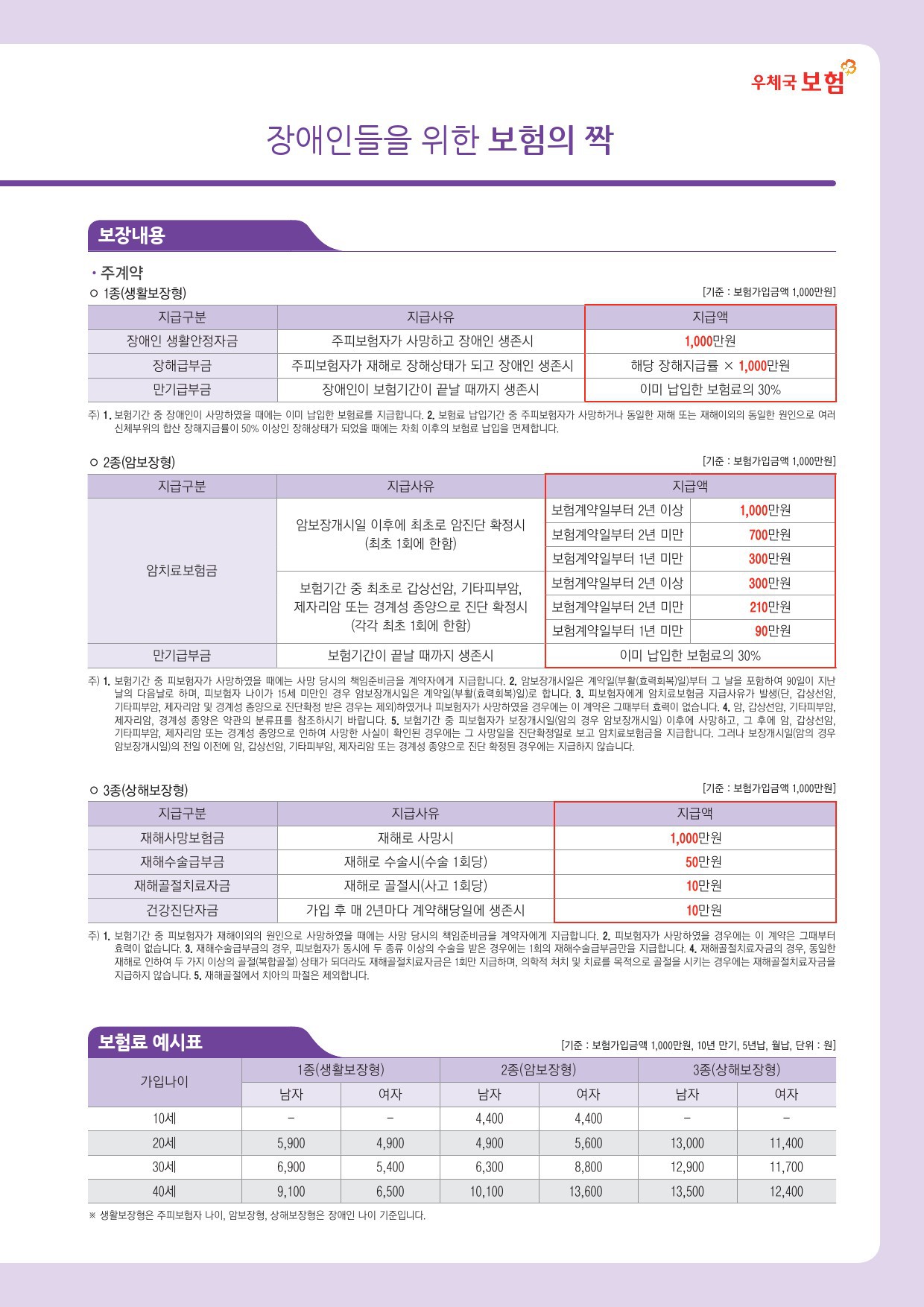 부양자 사망시 장애인에게 생활안정자금을 지급하는 ‘생활보장형’과 장애인에게 암발병시 치료비용을 지급하는 ‘암보장형’,